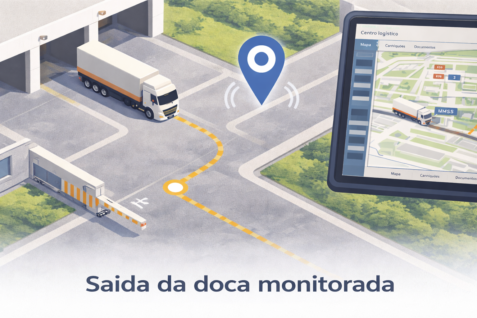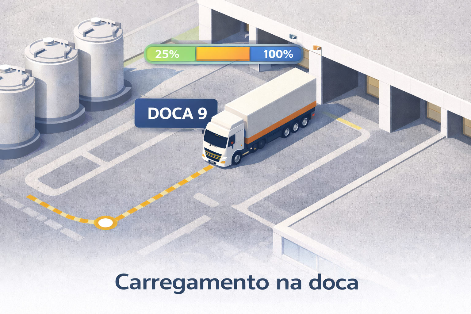 Acompanhe cada caminhão em tempo real, do portão à doca, com direcionamento automático.