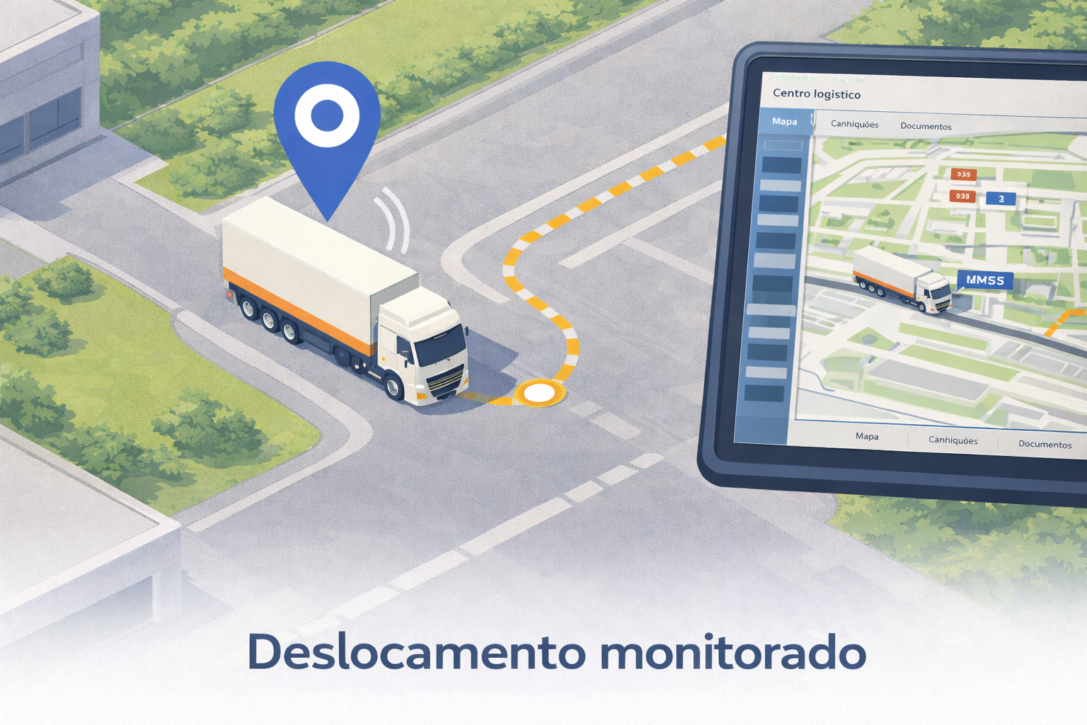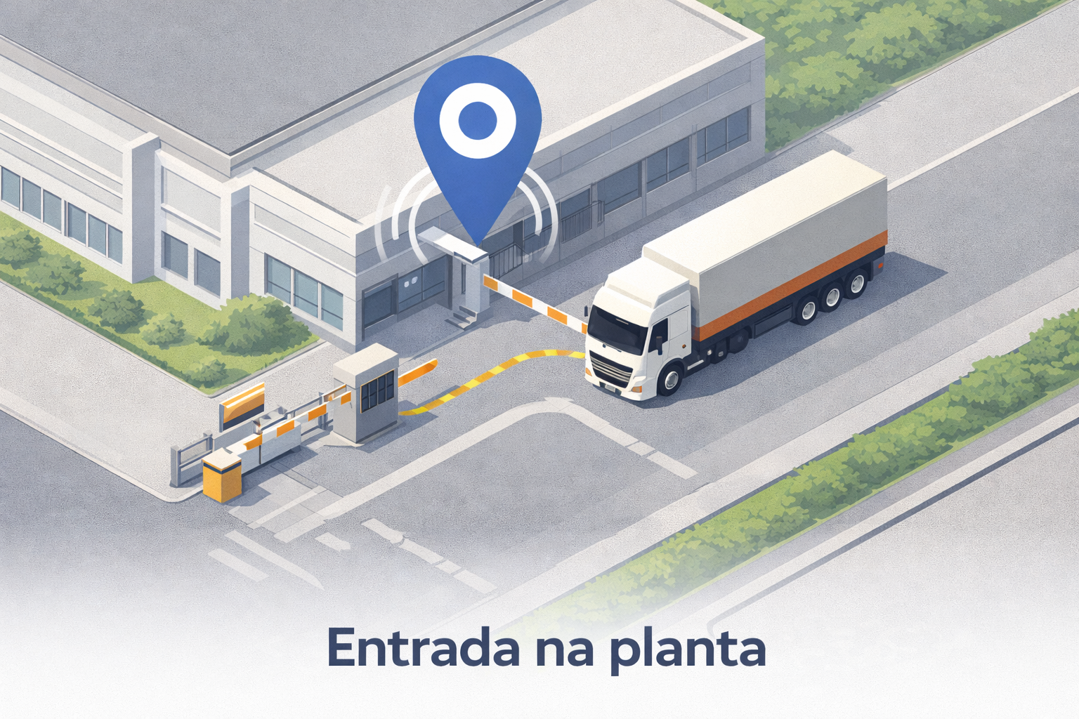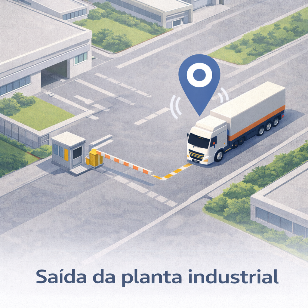 - O caminhão é identificado na portaria e o monitoramento por GPS é iniciado automaticamente dentro da área industrial.